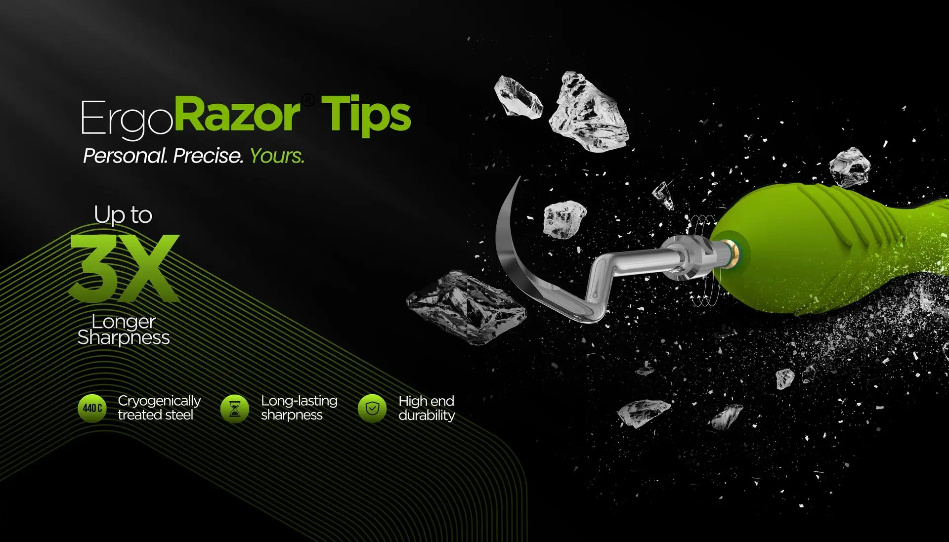 - ErgoRazor — designed to stay sharper for longer, helping clinicians work with precision and confidence