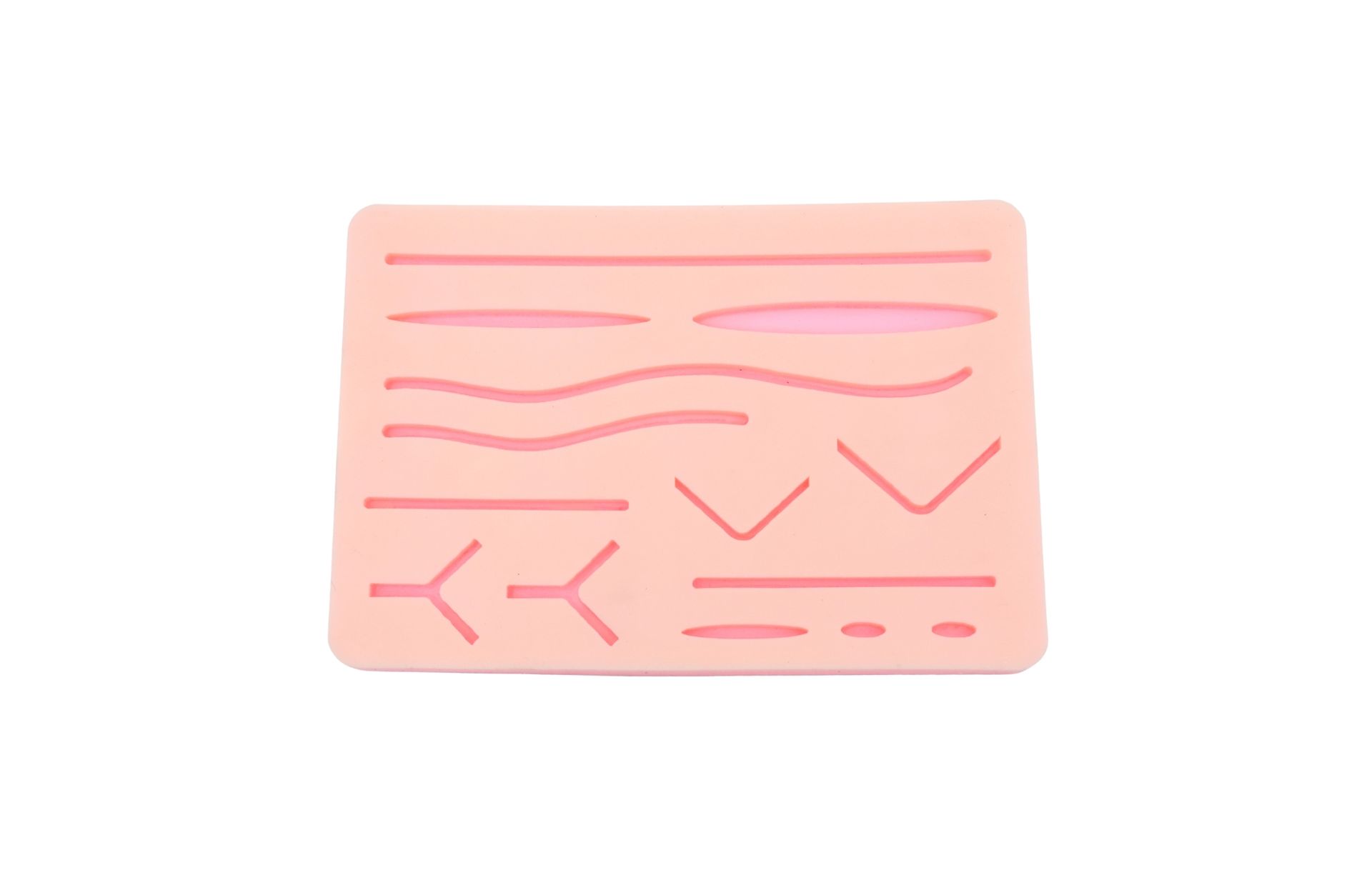 Realistic silicone training pad designed for suturing practice and surgical skill development. Reusable, easy to clean and ideal for students, residents and continuing-education courses.